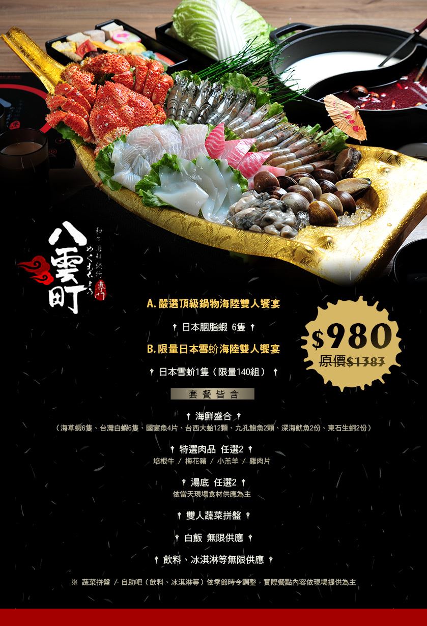 ![]() 京兆尹.養生御膳-雙龍飛騰套膳/四季平安套膳 傳承中國正宗御膳手藝,重現帝王養生用膳飲食文化,品嚐名菜食材特製的宮廷風味饗宴! 售價:1480 我要購買 京兆尹.養生御膳-雙龍飛騰套膳/四季平安套膳-傳承中國正宗御膳手藝,重現帝王養生用膳飲食文化,品嚐名菜食材特製的宮廷風味饗宴!京兆尹.養生御膳 雙龍飛騰套膳/四季平安套膳 | ![]() CUTTY SARK 卡提撒克.英國茶館《京站店》/《ATT館》/《史博館》-愛麗絲下午茶會套餐 手作英式狂想午茶派對,掉入愛麗絲仙境般的魔幻國度,一同沉醉在這開心不間斷的瘋狂茶會 售價:320 我要購買 CUTTY SARK 卡提撒克.英國茶館《京站店》/《ATT館》/《史博館》-愛麗絲下午茶會套餐-手作英式狂想午茶派對,掉入愛麗絲仙境般的魔幻國度,一同沉醉在這開心不間斷的瘋狂茶會CUTTY SARK | ![]() 犇 和三味-犇 和牛複合式雙人饗宴 港星來台及藝人聚餐首選!炙燒握壽司、鐵板香煎牛舌、涮煮和牛烏龍,一次享用和牛三吃美味 售價:1980 我要購買 犇 和三味-犇 和牛複合式雙人饗宴-港星來台及藝人聚餐首選!炙燒握壽司、鐵板香煎牛舌、涮煮和牛烏龍,一次享用和牛三吃美味犇 和三味 犇 和牛複合式雙人饗宴 |